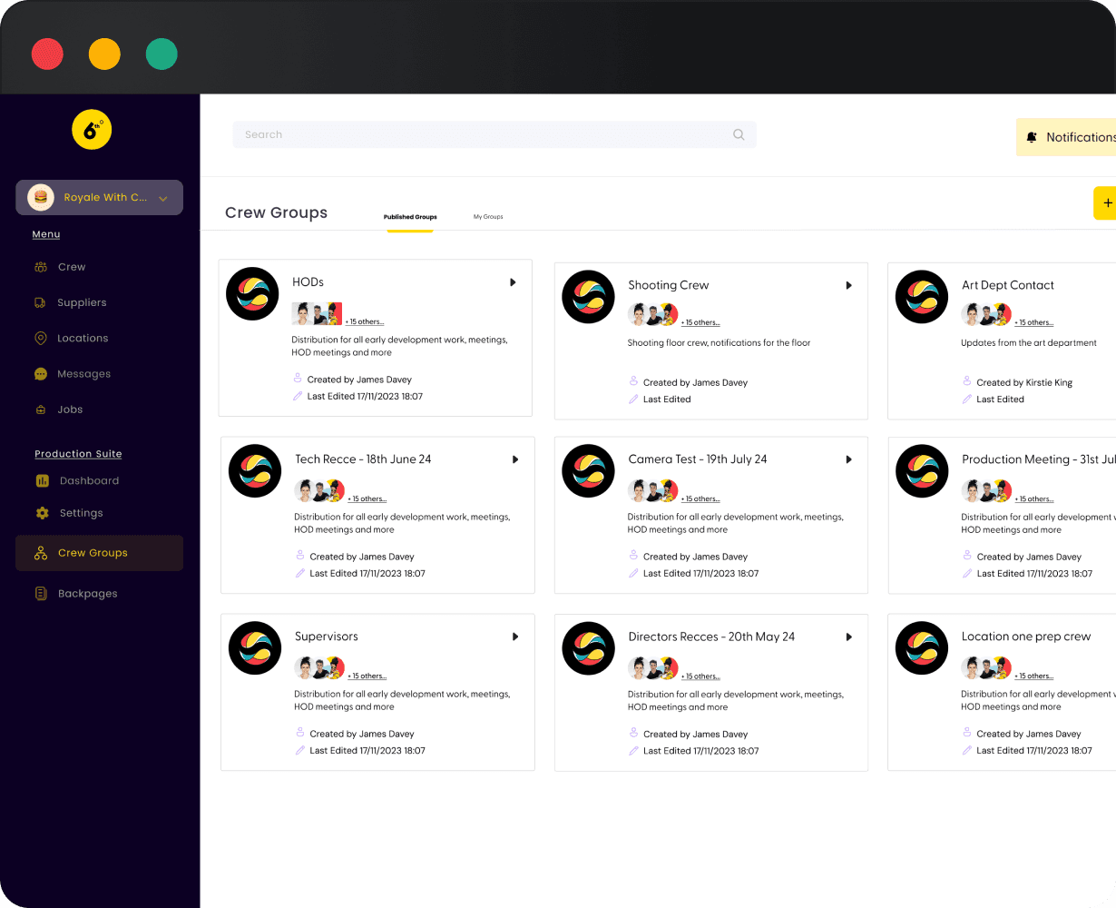 With Crew Groups, you can easily organize your crew into custom groupings. Send quick messages instantly with broadcasts—notify everyone about a 30-minute call push or a lunch delay with ease. Share watermarked documents, add groups to events, and manage any number of crew members effortlessly